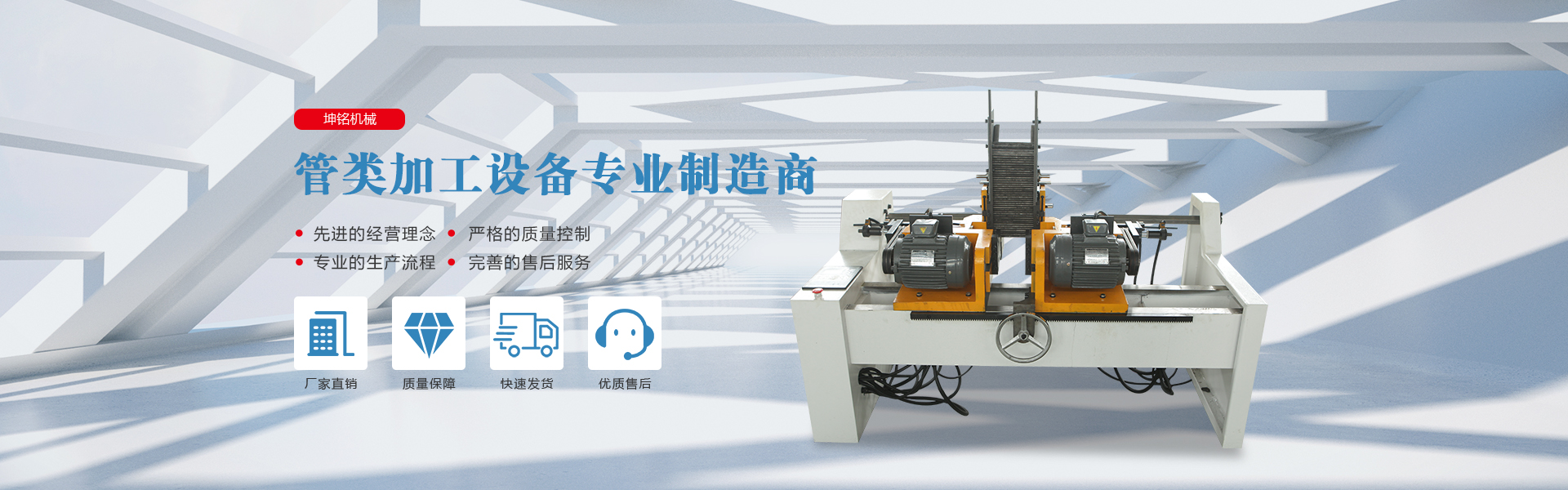 公司產(chǎn)品廣泛應(yīng)用于汽車、摩托車、自行車、童車、石油化工、水暖衛(wèi)浴等行業(yè),是各種管材、型材的切管、縮擴(kuò)、彎曲、鉚接的加工理想機(jī)械。